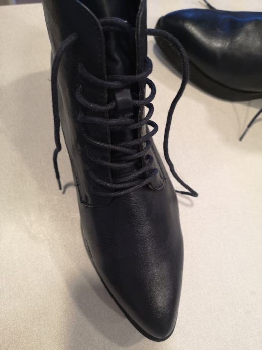 NOVE.. NE OBUVENE ZENSKE CIZME.. GLEZNJACE.. NA ZNJIRANJE.. TAMNO PLAVE SU I AKO NA PRILOZENIM FOTOGRAFIJAMA IZGLEDAJU KAO DA SU CRNE.. PLAVA JEST DOSTA TAMNA ALI JE IPAK PLAVA A NE CRNA..