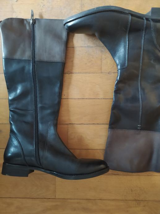 Čizme ženske "Tamaris" br 40 nove. Crna boja s ukrasnim detaljima na gornjoj strani. Gornjište je od kože, unutarnji dio je koža, tabanica guma. Podstavljene krznom. Decentne lagane tople za hladnu jesen/zimu, za grad, šetnju, posao, svaki dan,... Nove nikada nošene.