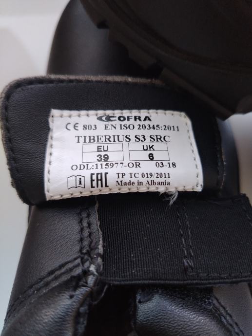 Prodajem Cofra zaštitne cipele model "Flavius" u crnoj boji, veličina 39. Cipele imaju S2 SRC certifikaciju prema normi EN ISO 20345:2011, što znači da nude zaštitu od mehaničkih opasnosti, antistatička su svojstva i protukliznski đon.