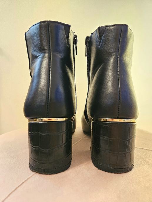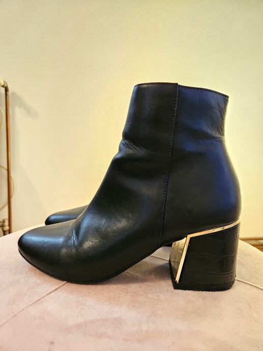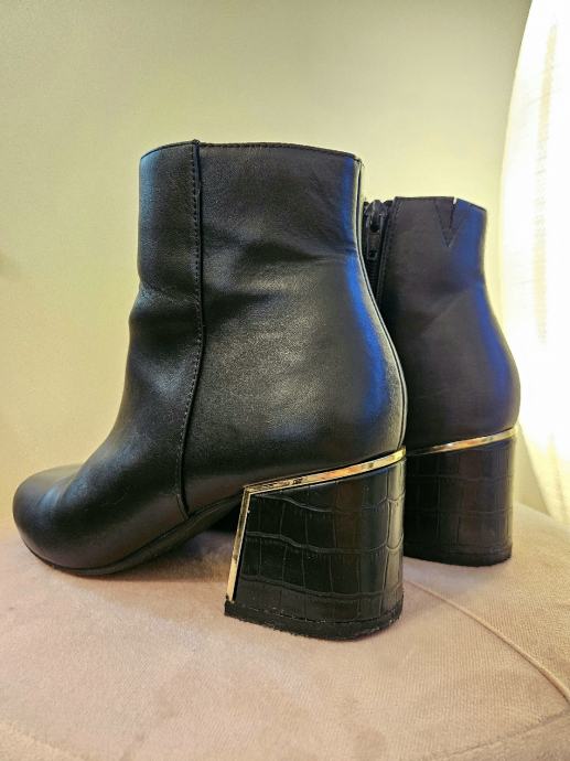 Crne gležnjače na petu sa drugačijim dezenom i zlatnim detaljima.