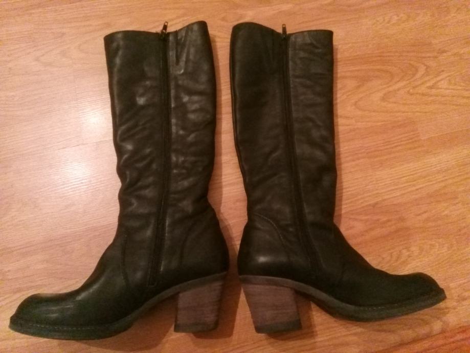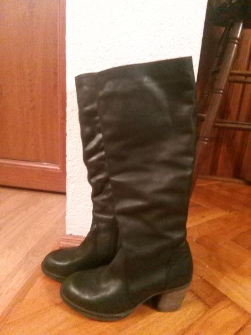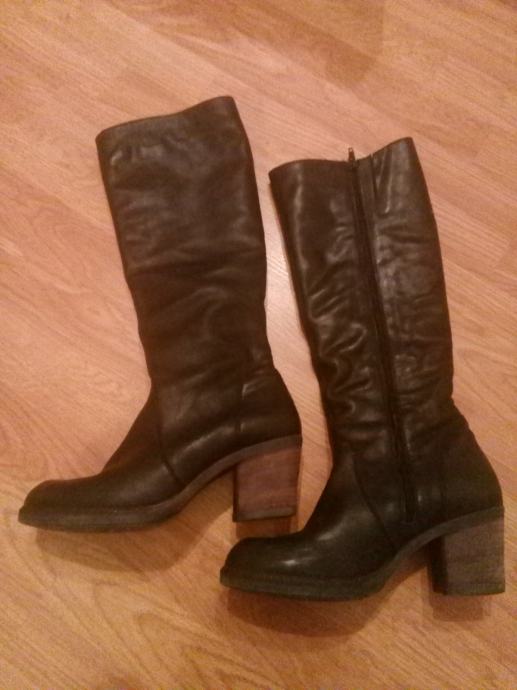 Crne kozne cizme, 39, prava koza, placene 600kn, kupljene u Peku, cvrste, stabilne, malo nosene.