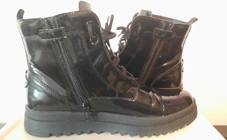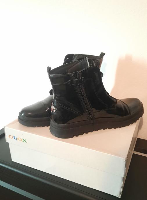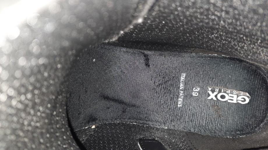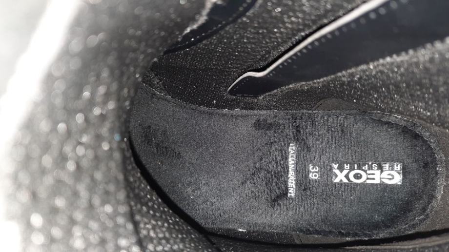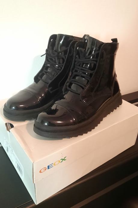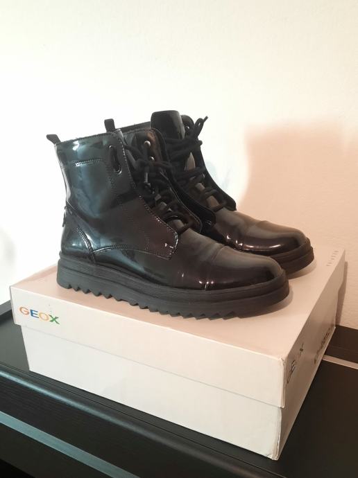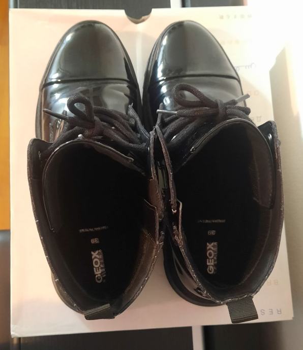 Veličina 39, crne lakirane, sa vezicama i patentom.