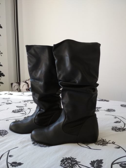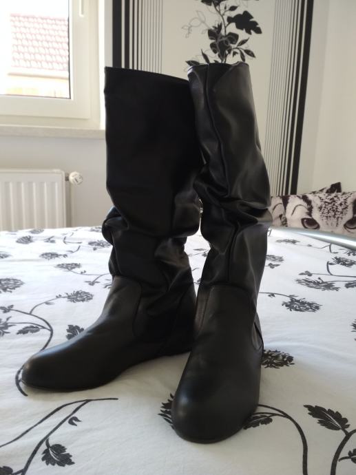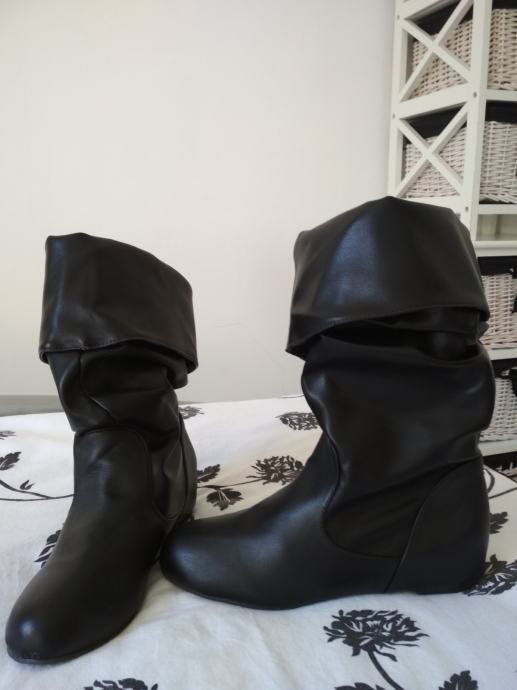 Čizme od umjetne kože. Mogu se nositi u sportskoj i elegantnoj kombinaciji. Visoke ili niske-kad se preklopi gornji dio. Lagano podstavljene.