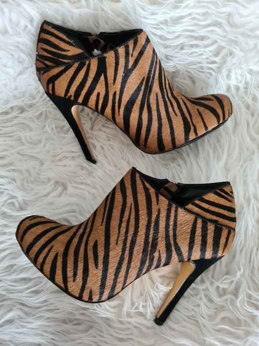 Dune kožne gležnjače, zivotinjski uzorak, visina pete 11cm, broj 38