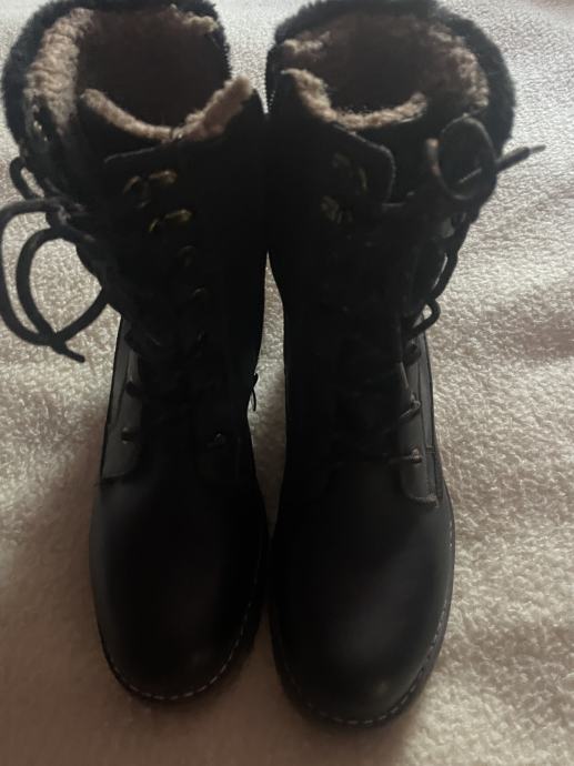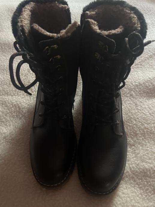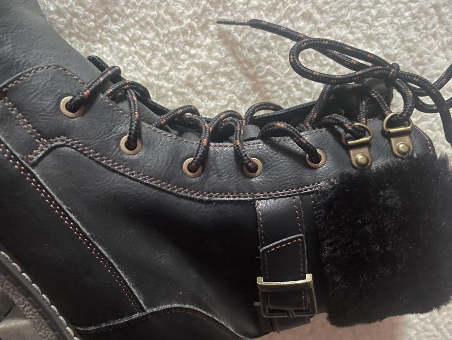Nove crne tople gležnjace marke OMG, veličina 40 (gazište 26 cm), kopčanje na cif, šnire nije potrebno koristiti, umjetna koža koja izgleda kao prava, povoljno
