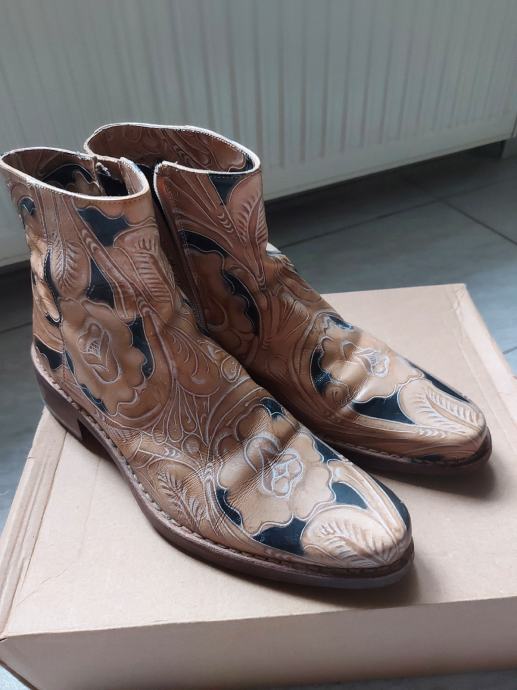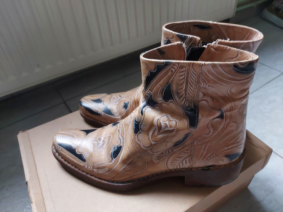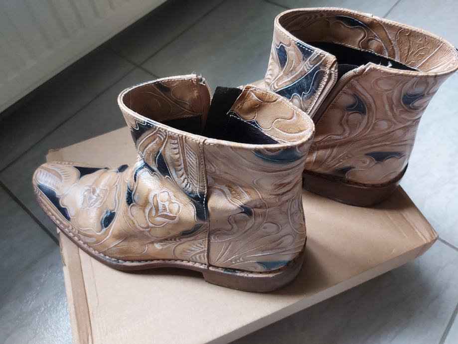 Čizmice ručno slikane, prava koža, proizvedene u Italiji, plaćene 1000 kn. Prošivene, a ne lijepljene, ekstra kvalitetne. Nošene svega nekoliko puta.