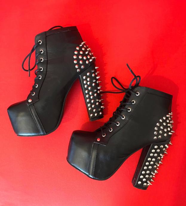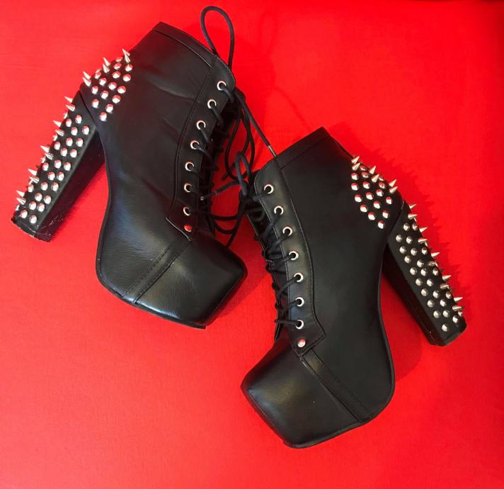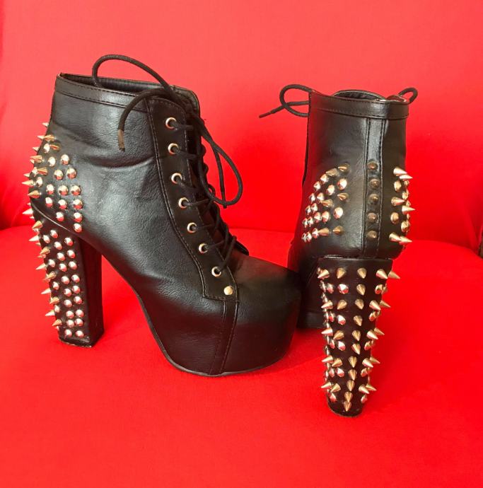 crne gležnjače sa spajkovima s debelom petom i platformom, udobne i efektne, vel 36