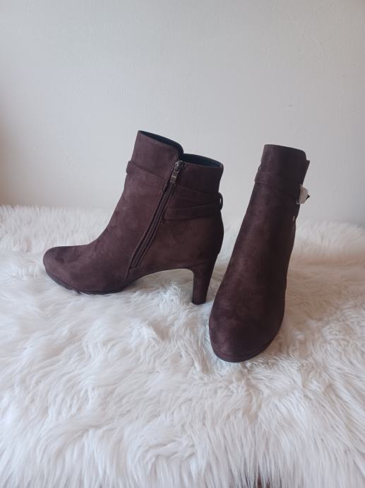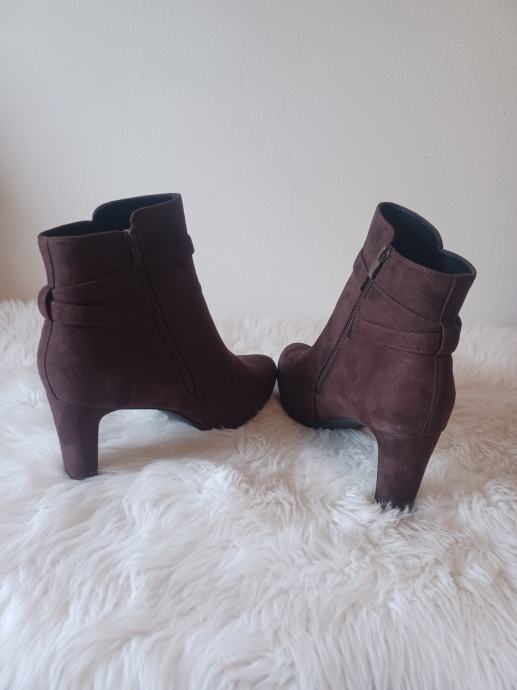 Gležnjače ženske smeđe, gazište 29,0 cm, višina potpetice 9 cm.