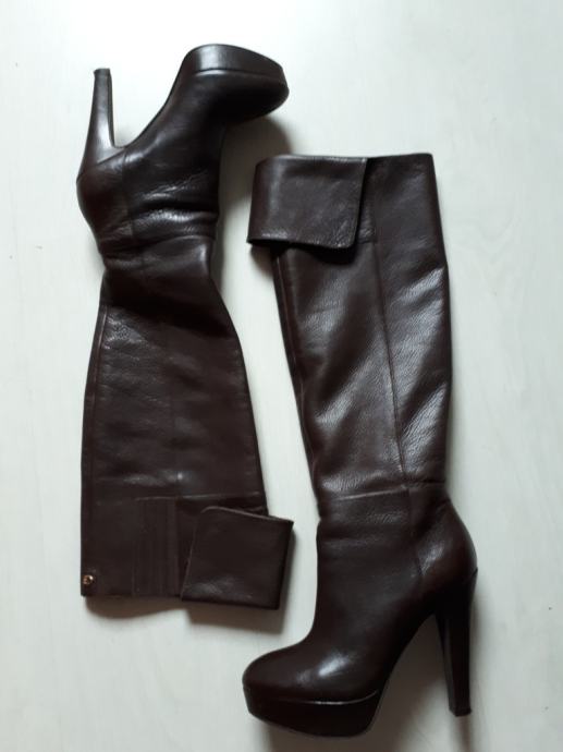 GUESS SMEĐE KOŽNE ČIZME,broj 36., prava koža , jednom nosene na pola sata (premale), visina pete 12 cm, ukupna visina 62 cm , placene 2700 kn , prodajem za 900 kn.