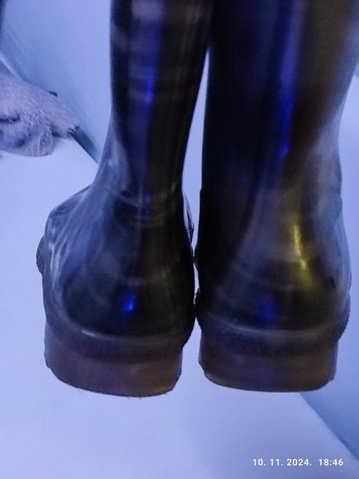 na jednoj čizmi pri vrhu, vidi se fleka nastala od hrđe ( manje se vidi u živo nego ovako preko kamere)