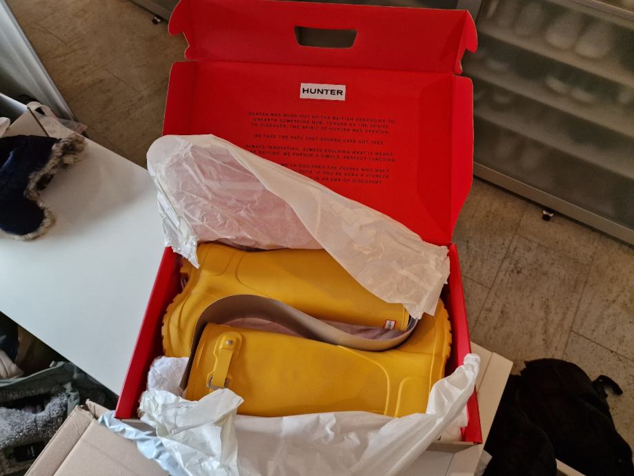 Prodajem u pola cijene nove nikad nošene žute čizme za kišu u kutiji sa računom.