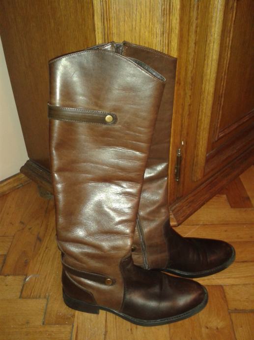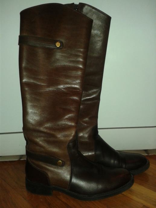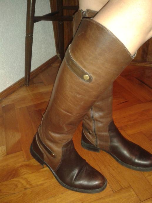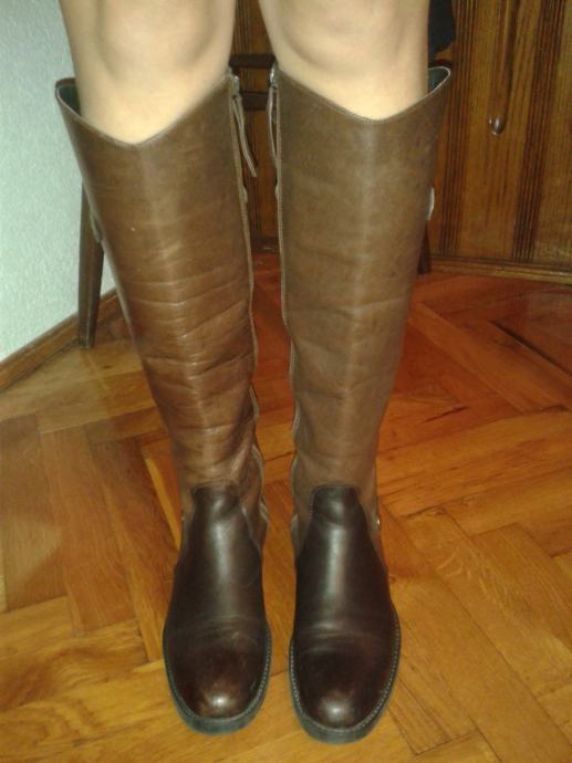 Kožne čizme, jako kvalitetna koža. Boja-tamnija i svjetlija smeđa. Kupljene u Borovu, nošene par puta, skroz očuvane. Imaju rajfešlus sa unutarnje strane. Broj 37. Platila sam ih 900kn. Prodajem ih jer su mi malo male, nosim inace 38 broj, ali su mi se jako svidjele pa sam kupila 37 jer broja 38 nije bilo.