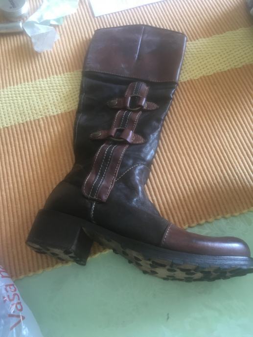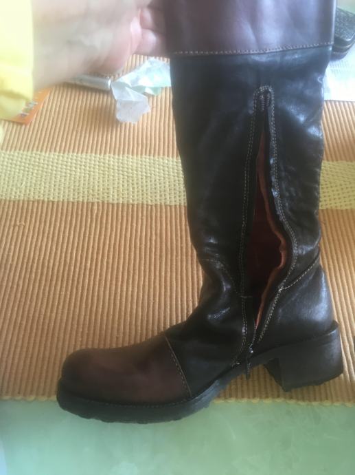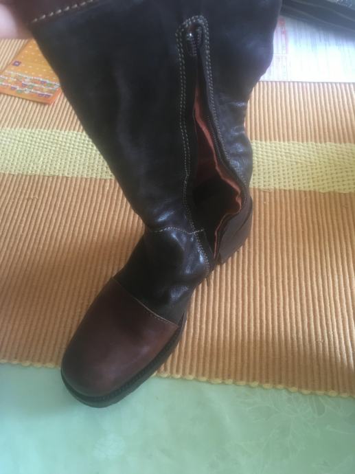 KOZNE CIZME VISOKE, MANJA PETA,4CM, SMEDE,BR 38,PAR PUTA OBUVENE