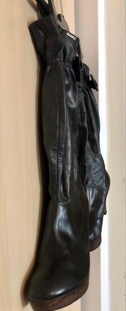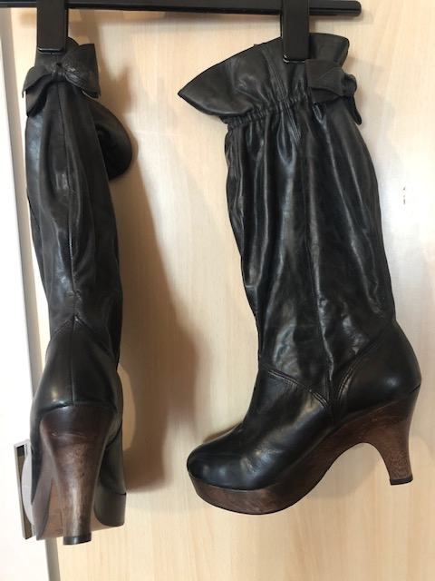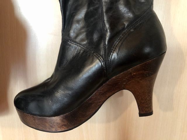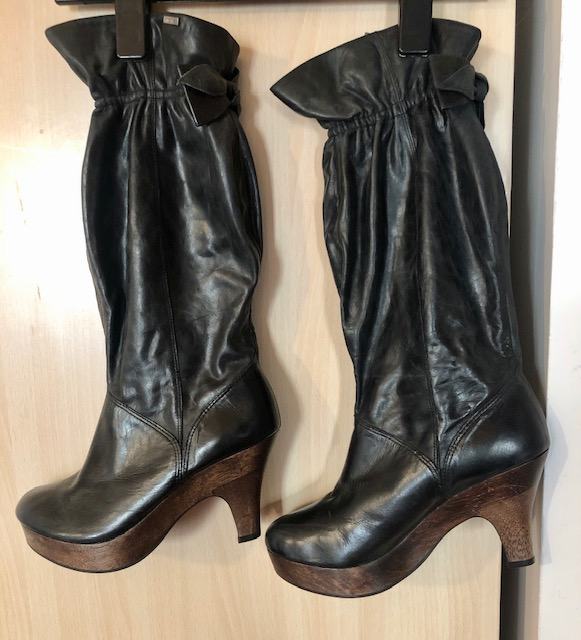 Nove kožne Firetrap čizme zanimljivog dizajna, crne s drvenom, tamnosmeđom 'plateau' petom, veličina 41.