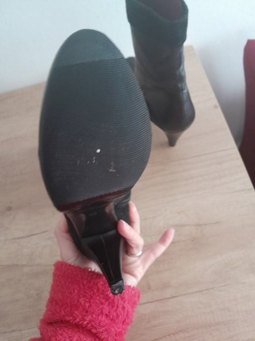 Prepredivne kožne gležnjače, kupljene u Guliveru dok su još prodavali talijansku obuću. Nošene za posebne prigode oko desetak puta, stavljena je guma da se ne kližu. Vrlo vrlo elegantne, crna koža a dio je i brušena. Razlog prodaje je da mi je peta postala previsoka za moja koljena, inače teška ih prodajem, ali nek ih još netko nosi. Uz njih poklanjam Lazzarini gležnjače u konjak boji, isto veličina 36. Nisu nikada nošene, nažalost dio se odlijepio, što može spretna ruka popraviti. Isto su kožne
