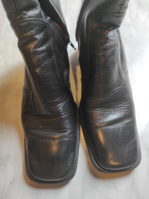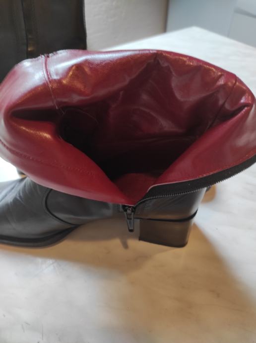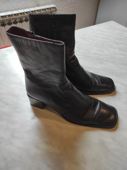 Talijanske kožne gležnjače br.39.koža iznutra. Potplat sa gumom.peta 5 cm, visina sare mjereno od pete 18 cm.