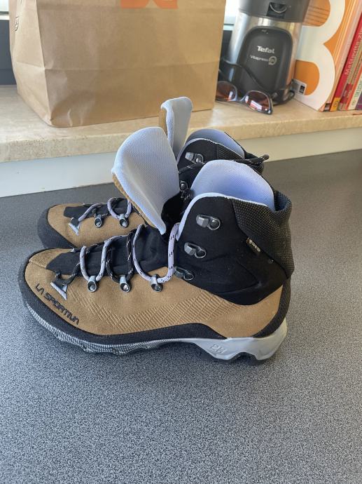 La sportiva gojzerice kupljene 4/2024. Nosene nazalost salo jednom, kupljen premali broj. Velicina 41,5. Link na stranicu s koje su kupljene: https://www.bergfreunde.eu/la-sportiva-womens-aequilibrium-trek-gtx-walking-boots/