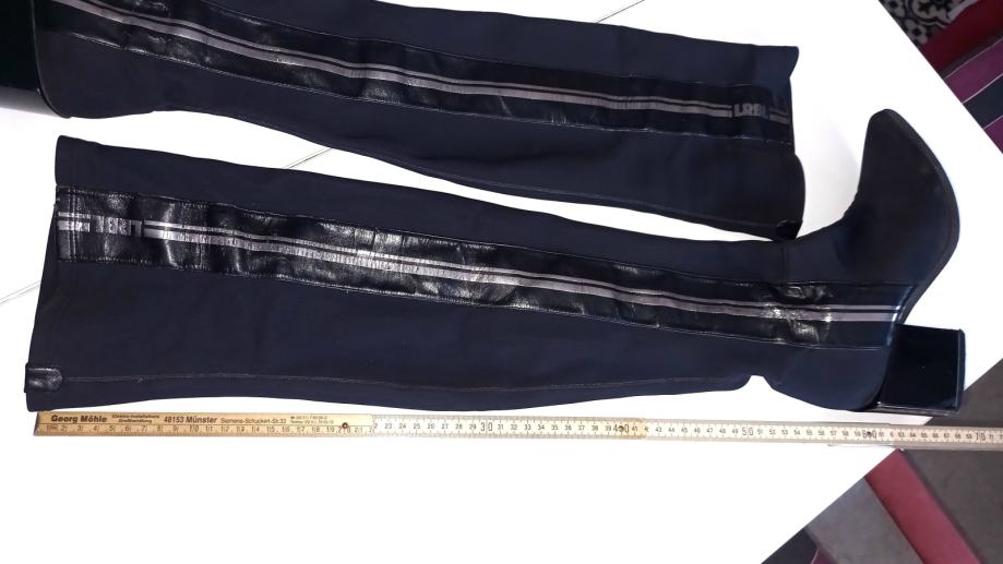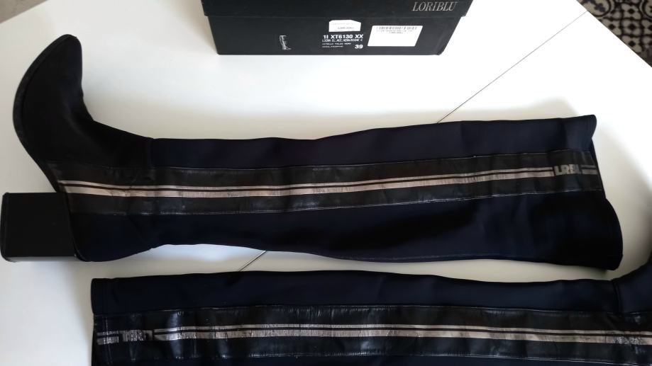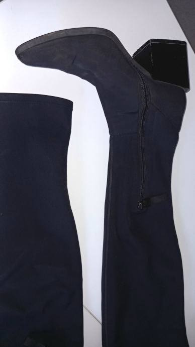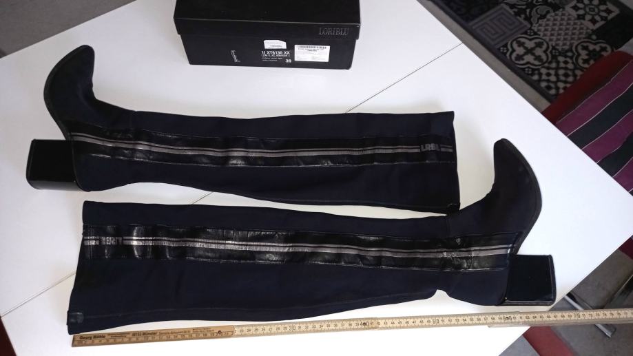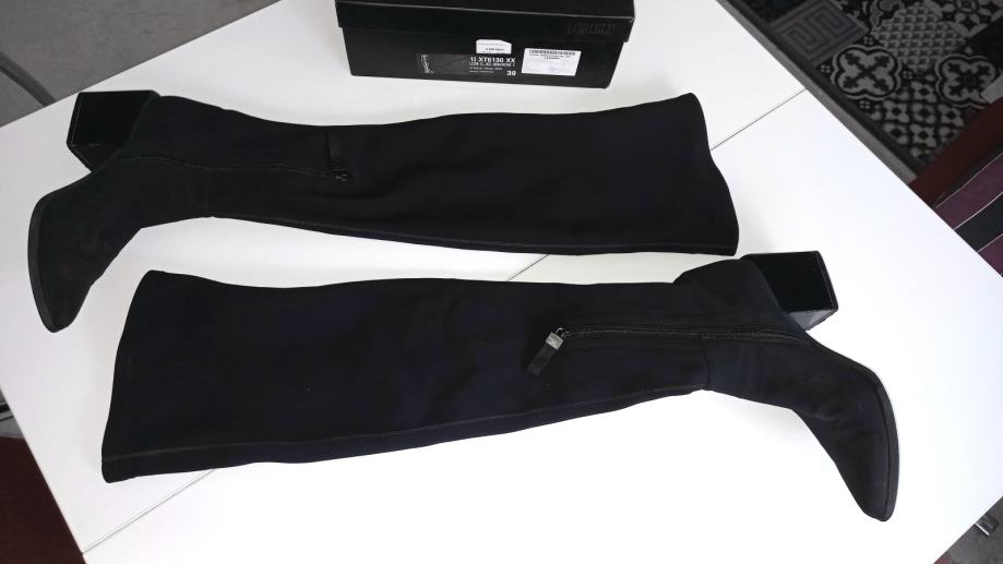 LORIBLU ženske čisto crne elastične čizmice, br. 39 visina preko koljena. Imaju zipper.