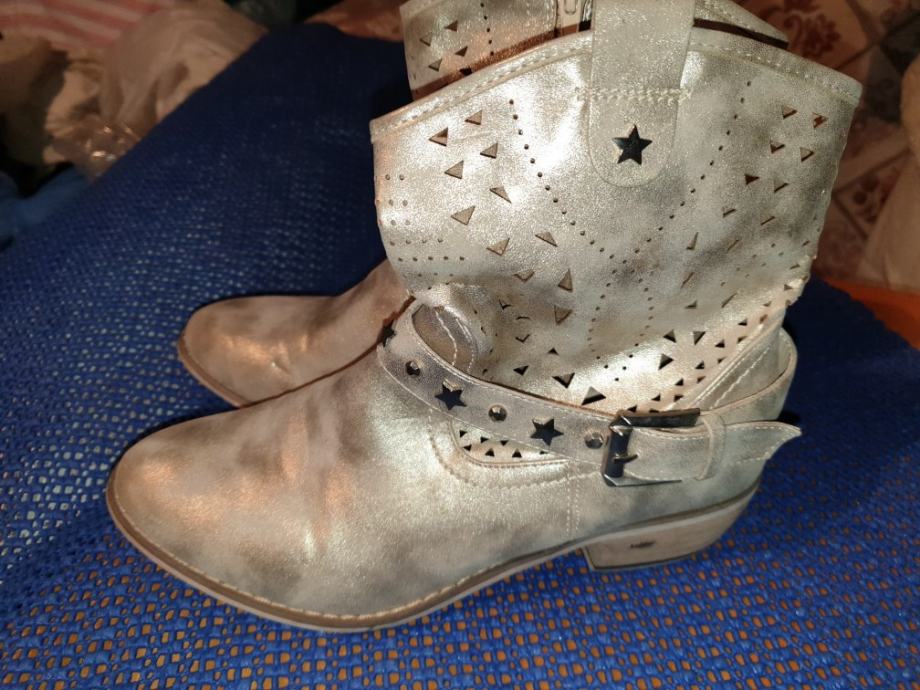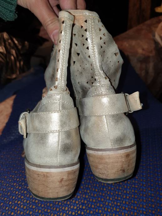 Mass čizme, mislim da nije prava koža.1 nosene,kao nove..vel 38..izuzetno udobne zbog male pete.zlatno srebrne