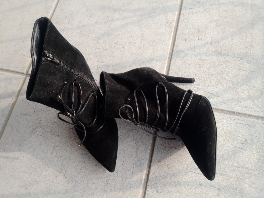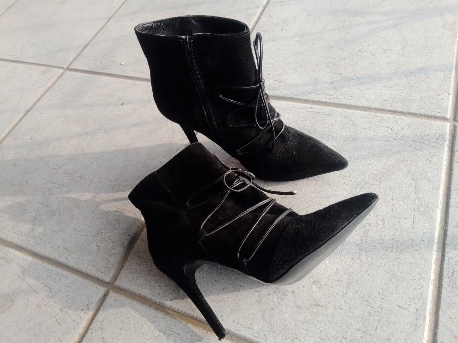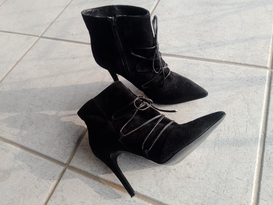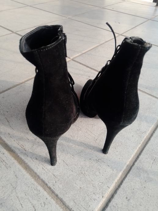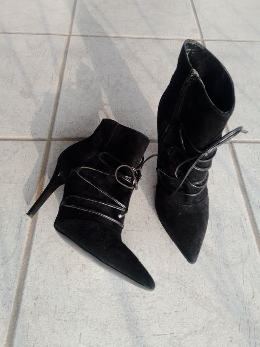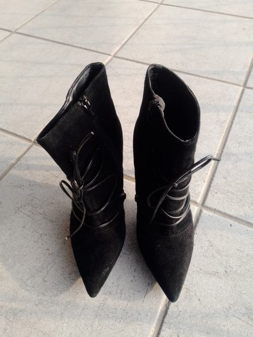 Moderne crne gležnjače na petu, prava koža, kupljene u Italiji, br. 37