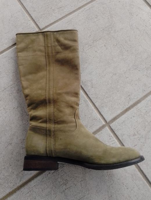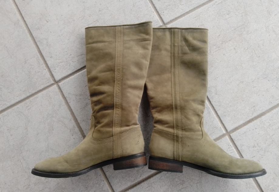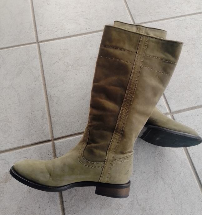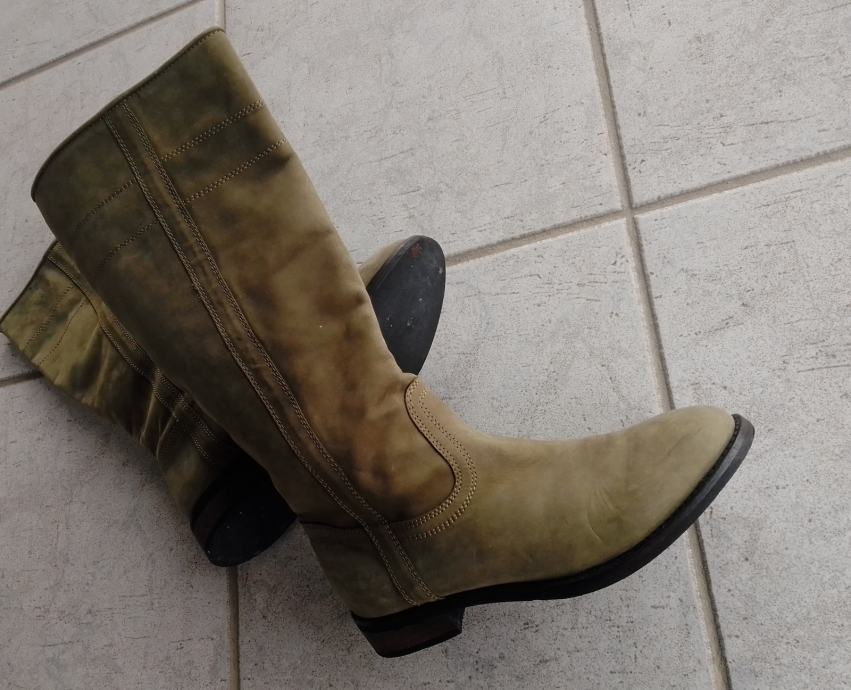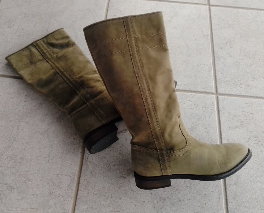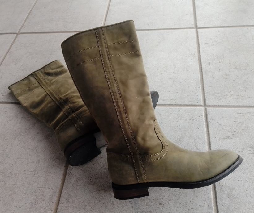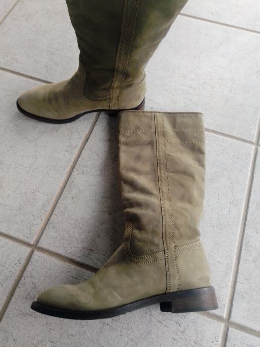 Moderne, očuvane maslinastozelene "Tango" čizme od prave kože, br. 38