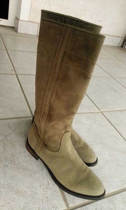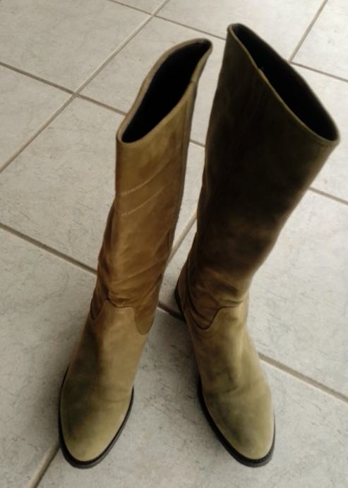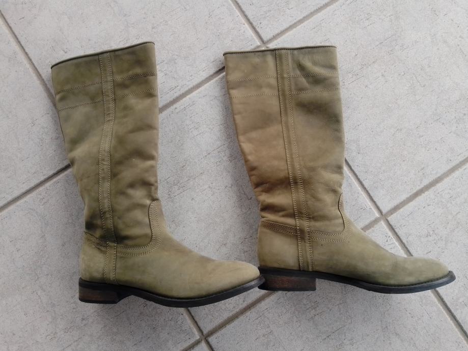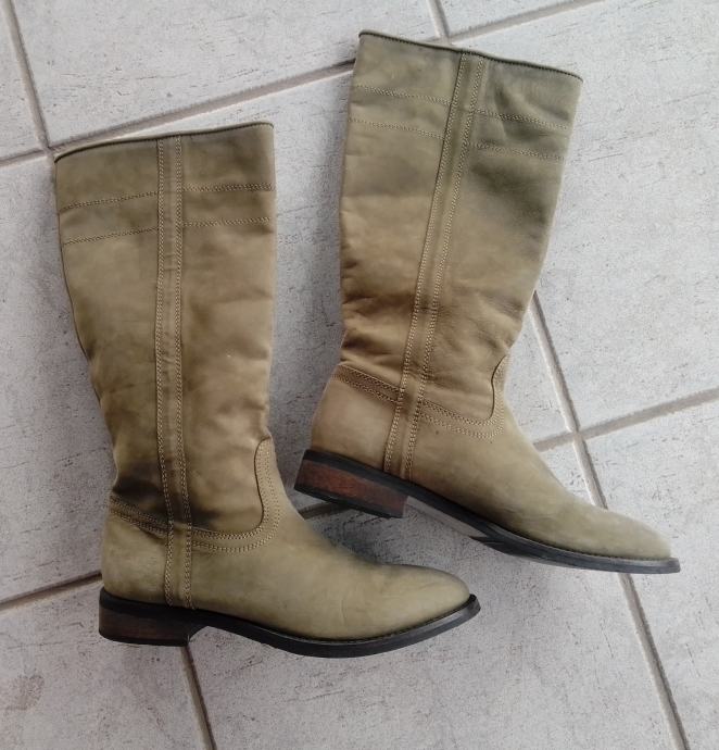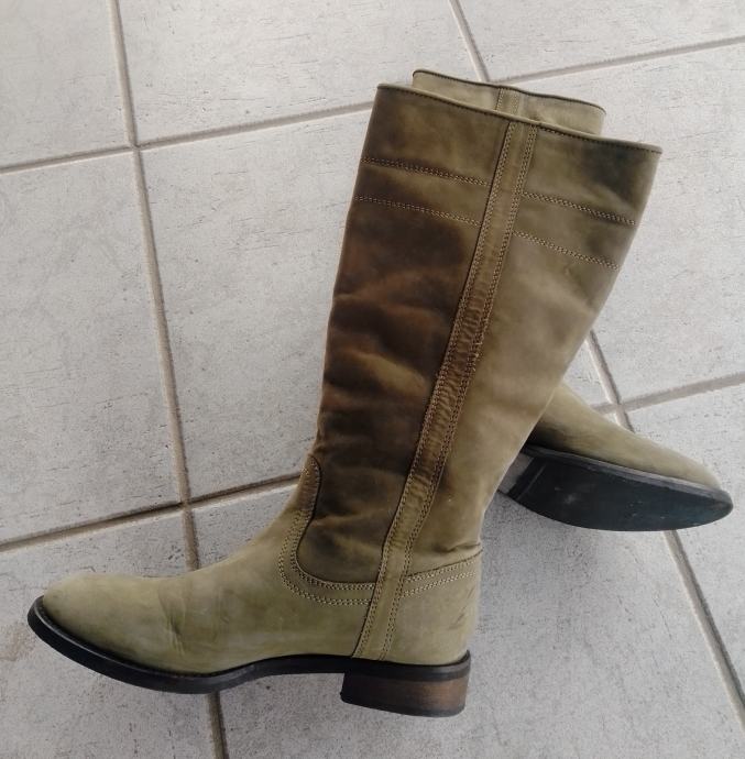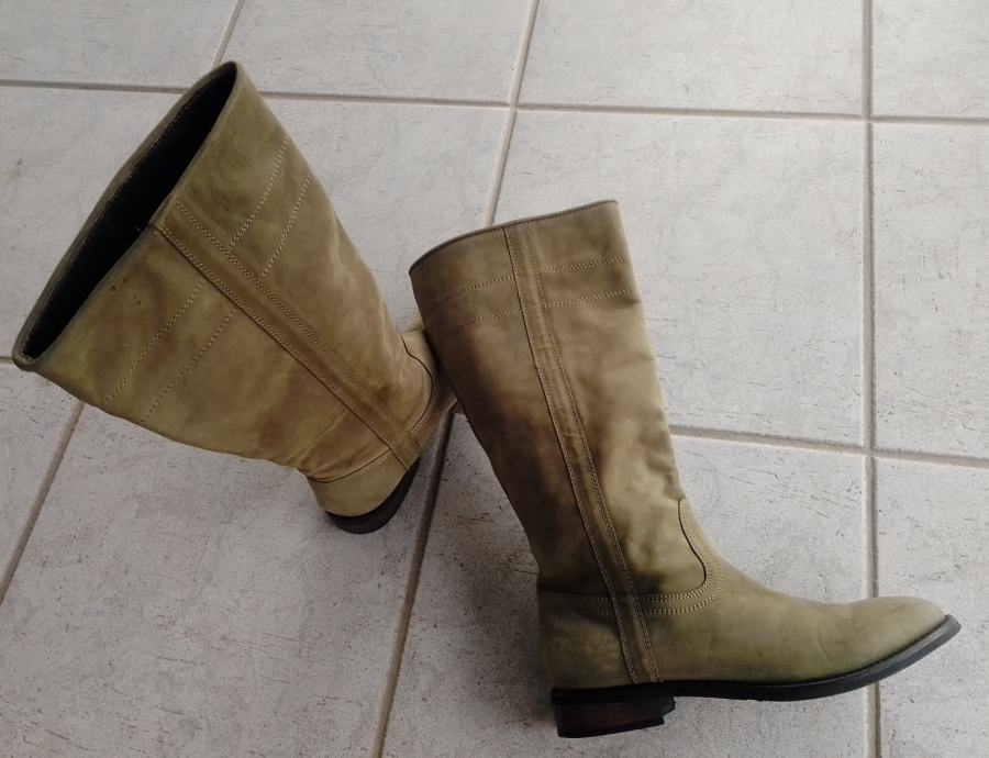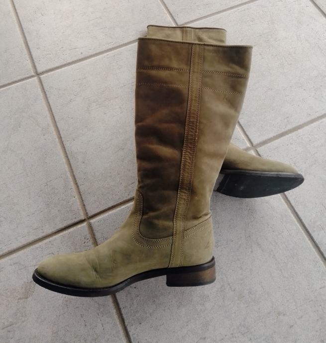 Moderne, očuvane maslinastozelene "Tango" čizme od prave kože, br. 38