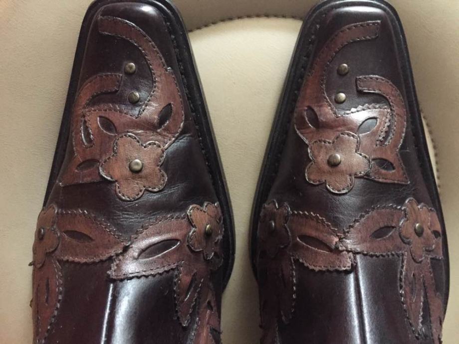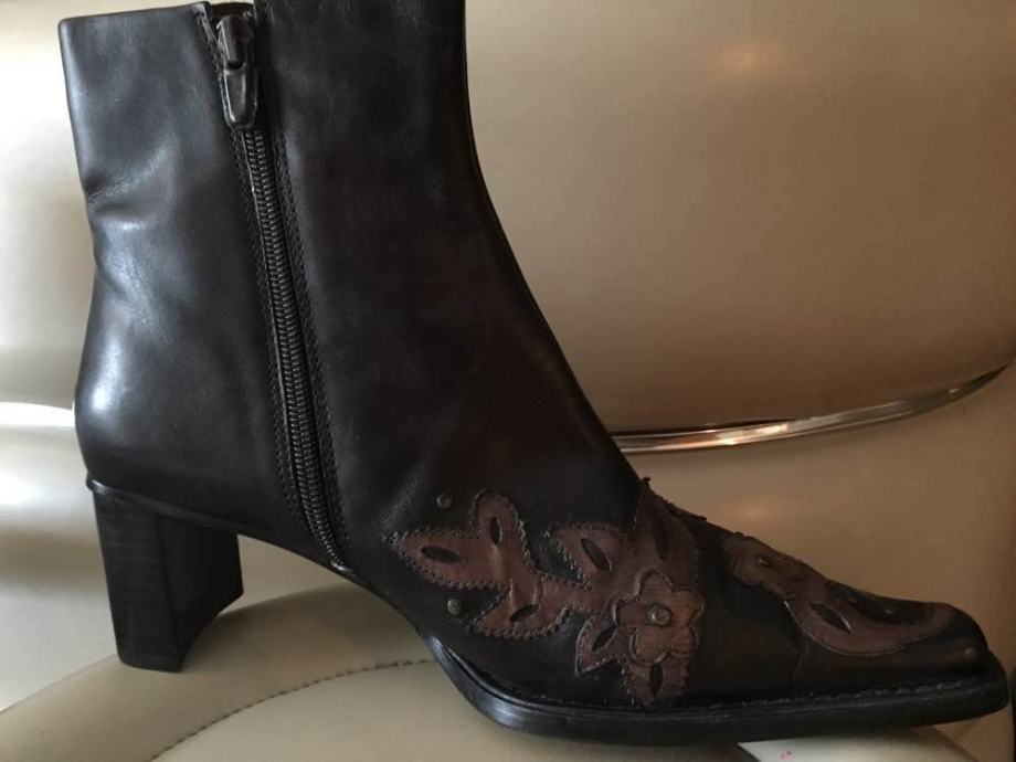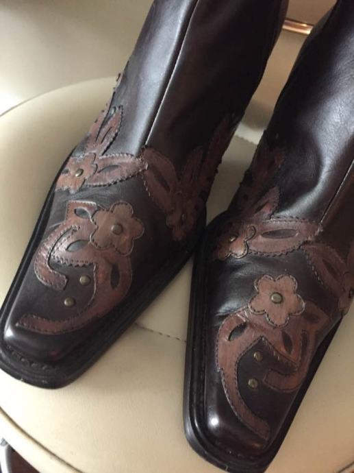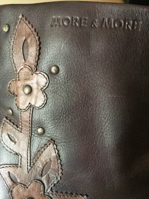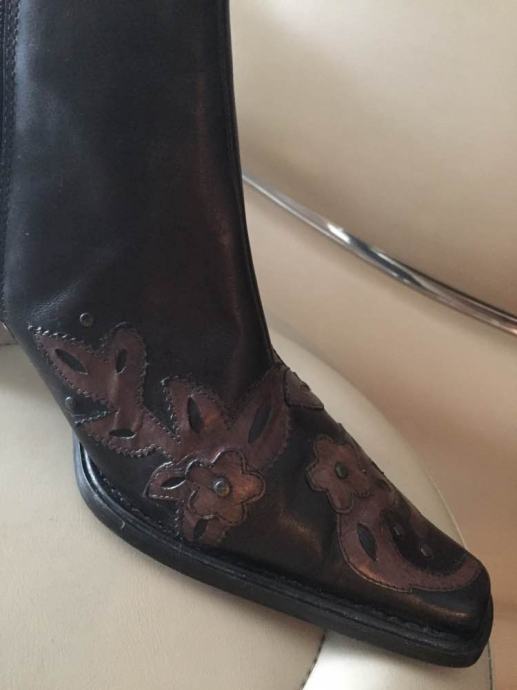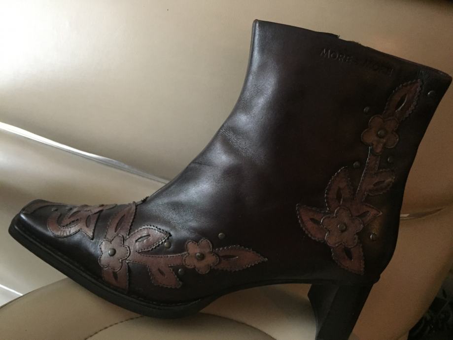 MORE&MORE efektne dizajnerske kožne čizme gležnjače od prave kože sa zakovicama i cvjetnim aplikacijama..vrlo kvalitetne udobne i upadljive..kaubojski stil...cijele od prave kože..rucni rad..protuklizno gazište...vel.39..novo!