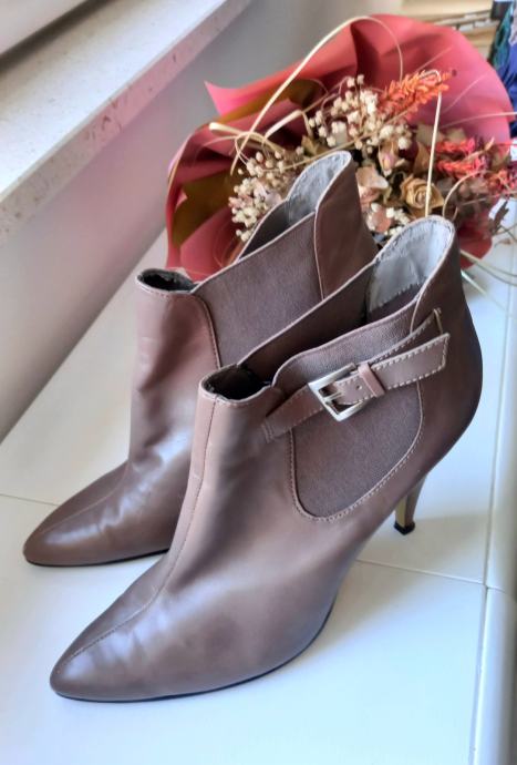 NINE WEST gležnjače boje bijele kave na visoku petu. Veličina 9M=40