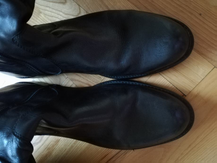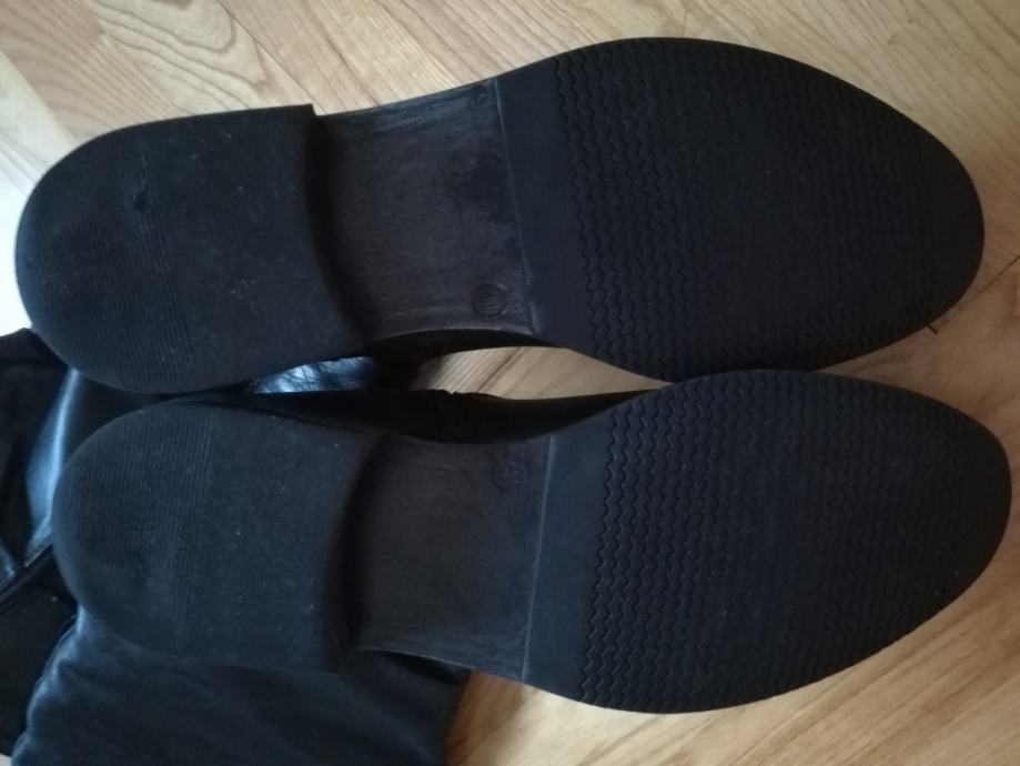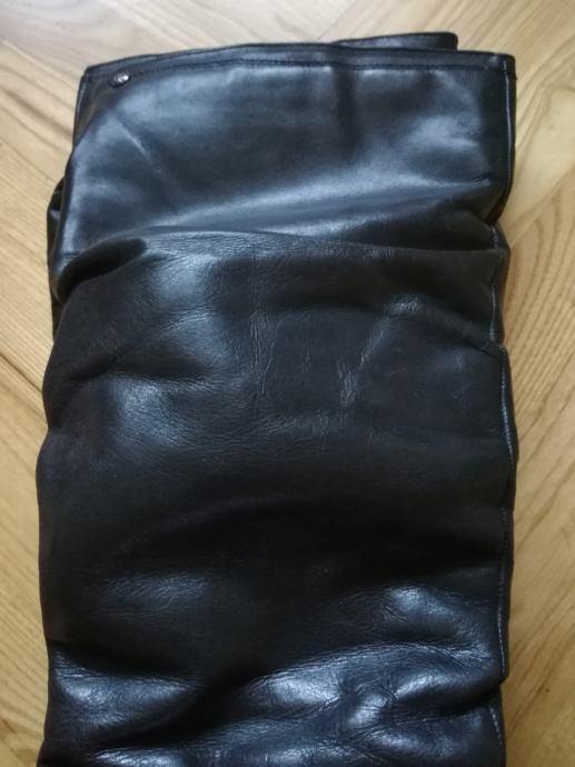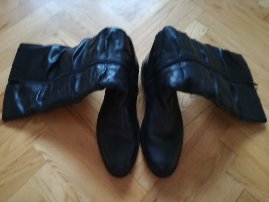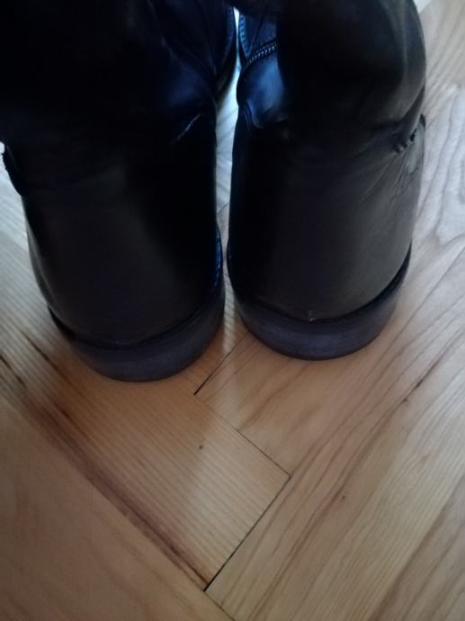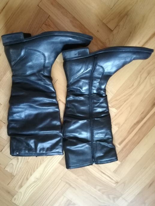 Kao nove visina do koljena,kožne,na cif ,visina pete 3 cm,potpuno novi gumeni đon neklizajuci,malo su namreskane sa strane za ljepši izgled a opet jednostavne malo nosene ,nepropusne, više informacija na upit