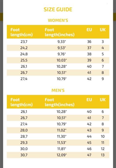 Duljina gazišta: 26.7 cm (iz tablice proizvođača)