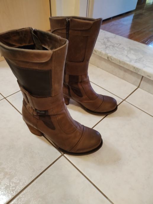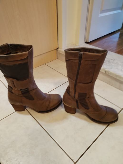 Prodajem smeđe kožne čizme, očuvane, broj 38.