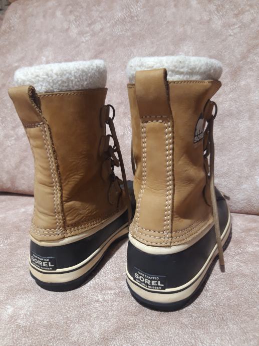 SOREL Kanada, vrhunska kvaliteta i jako tople čizme, do -40. Kanadske čizme, za ekstremnu hladnoću, potpuno vodo nepropusne, izrađene od debele kože, vulkanizirane čvrste i debele prave gume, a umetak je debeli radi se od sobovih dlaka a gornji dio od ovcije vune. Zbog ove prave gume one se ne klizu po kliskoj i smrznutoj površini. Nošene su samo desetak puta tako da su bez tragova nošenja. Plaćene su 150 eura. Prodajem ih za 50 eura. Mob 091 444 4281