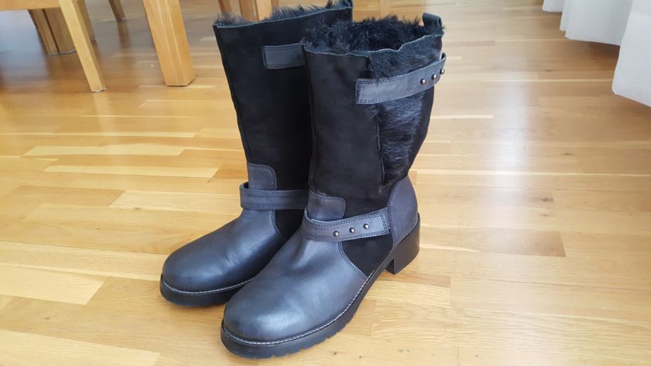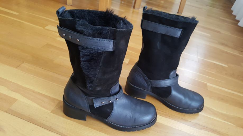 Prodajem par puta nosene kozne Talijanske cizme br 41, izvana prava koza ,iznutra toplo krzno, vrlo tople, prosiveni djonovi ,nemaju tragova nosenja ,kao nove ,vrlo cvrste i visoke kvalitete, visina pete 5 cm ,sivo - crne boje