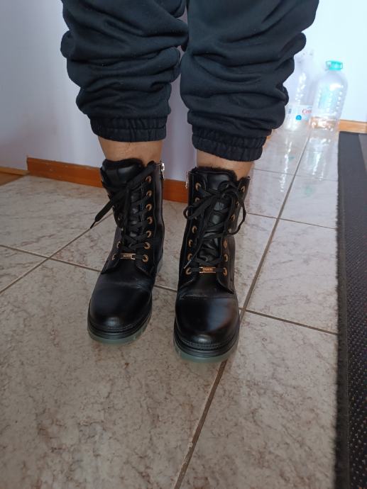 Prodajem nove kožne Tom Tailor gležnjače (nošene doslovno 2 puta) iznutra potpuno obložene krznom, sa strane imaju cif i vežu se,crna boja. Br.39