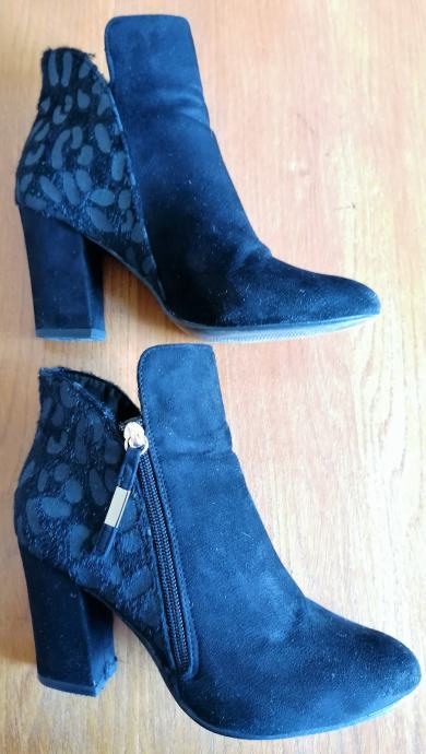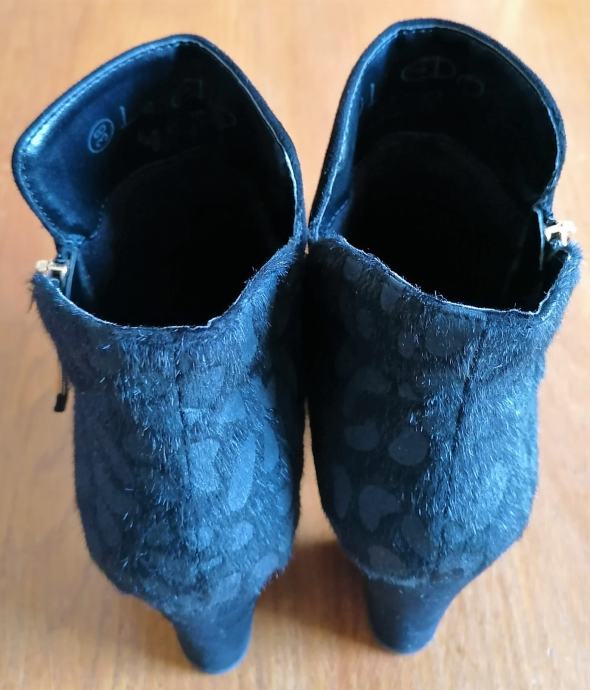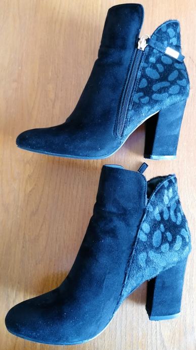 Velur čizme gležnjače, od velur tkanine, sa "dlakavim" uzorkom otraga, sa visokom petom.