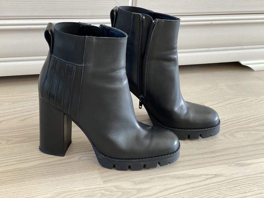 Par puta nošene, u dobrom stanju, bez oštećenja, visoka stabilna peta sa platformom, izuzetno udobne, prava koža. Mogućnost slanja poštom. Veličina 39.