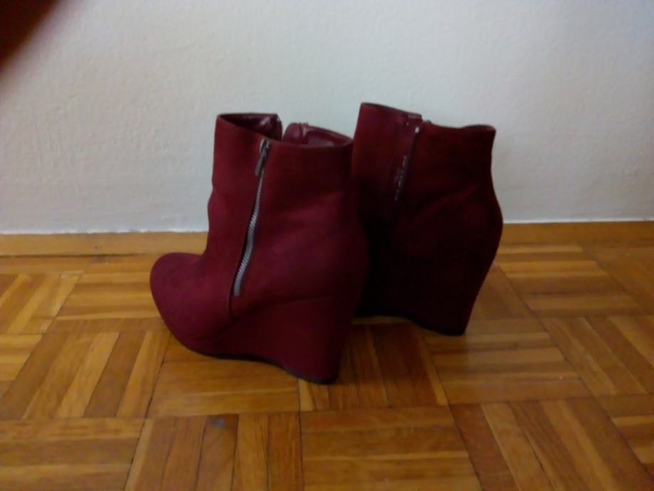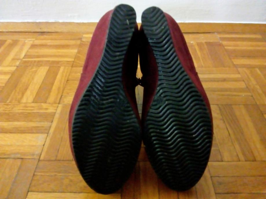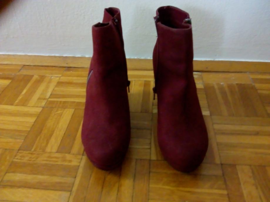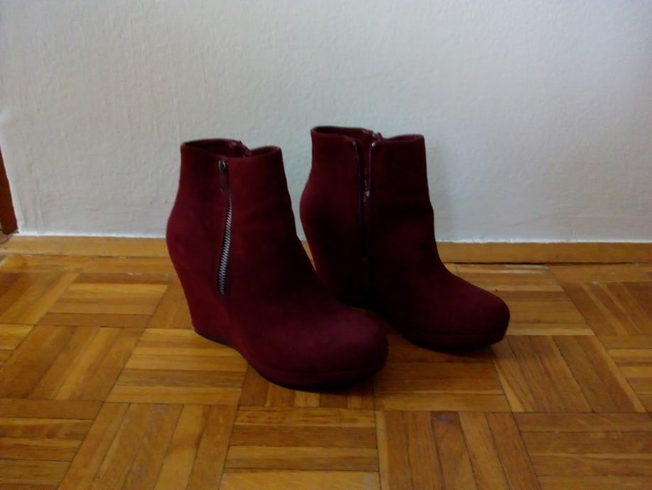 Vrlo POVOLJNO prodajem niske bordo čizme od brušene kože na punu petu od oko 10 cm.