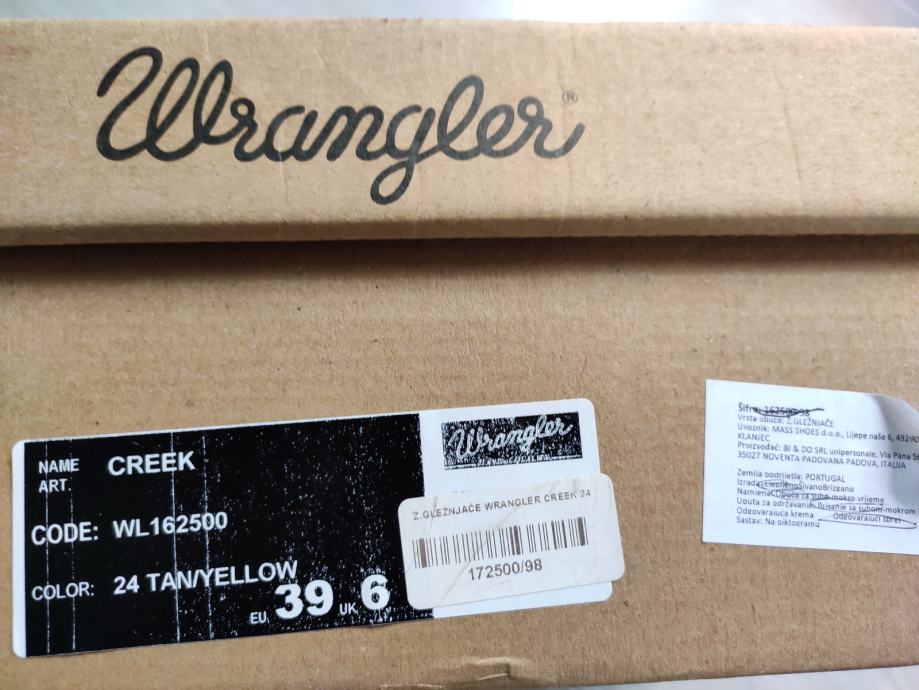Prodajem rabljene Wrangler gležnjače svjetle boje u originalnoj kutiji. Veličina 39. Model je za užu nogu.