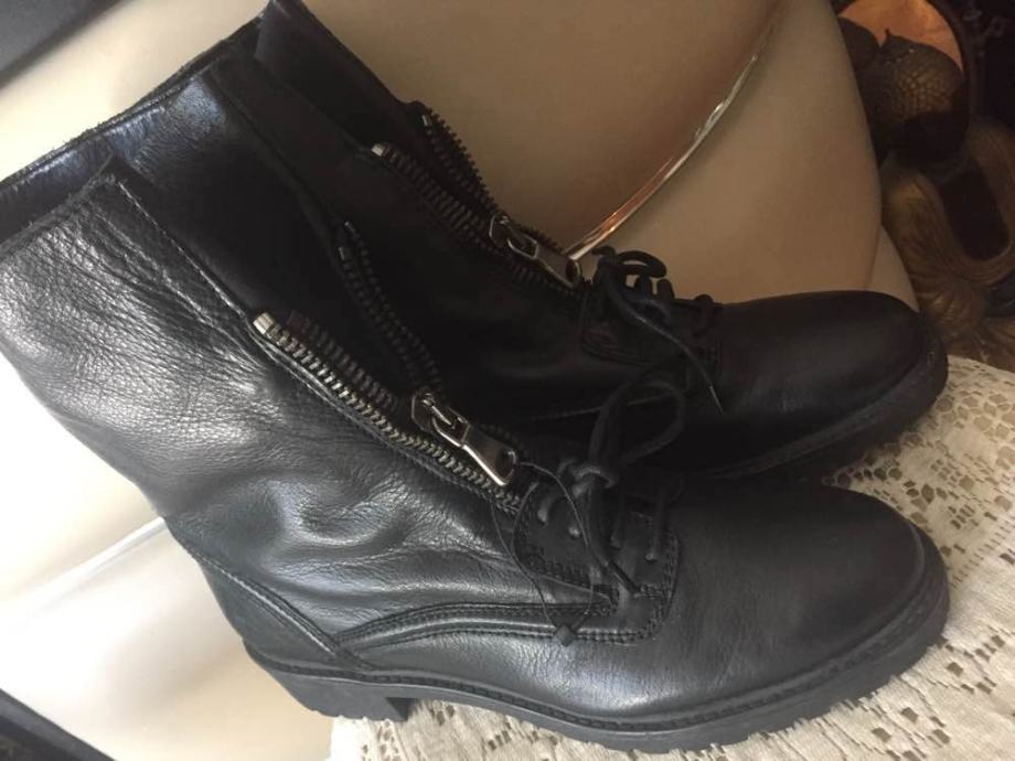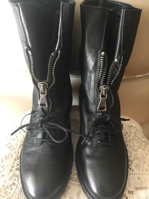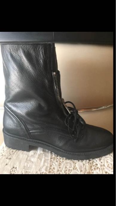 ZARA WOMAN kožne crne gležnjače polučizme prava koža combat style
