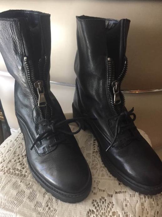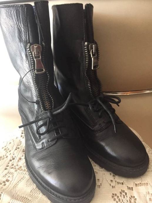 ZARA WOMAN kožne crne efektne gležnjače na zip i vezice..zanimljiv model od vrlo mekane i kvalitetne prave kože..udobne ...protuklizno gazište...nove,nenošene ..odgovaraju za br.38-39..po deklaraciji br.38