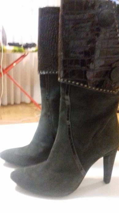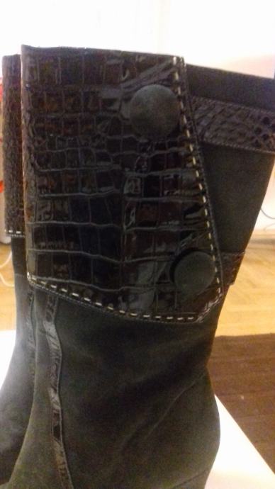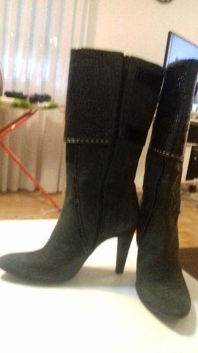 Potpuno nove, kozne Nera čizme ,br 39(manji kalup), boja zeleno siva ( nije intenzivna) i crni lak.
