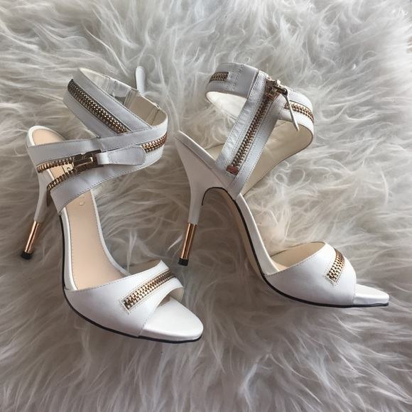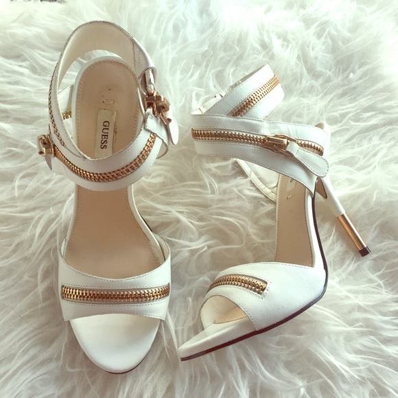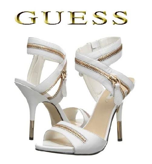 GUESS vrlo sexy, ivory, elegantne i svečane SANDALE, od extra fine, meke BIJELE kože i sa ZLATNIM UKRASIMA:
