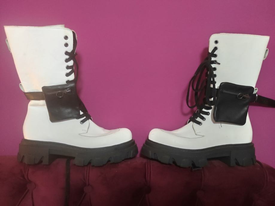 Ženske čizme kožne, poznate modne marke, s kožnatim džepovima, br.39. Nošene svega par puta, očuvane kao nove. Udobne,efektne.