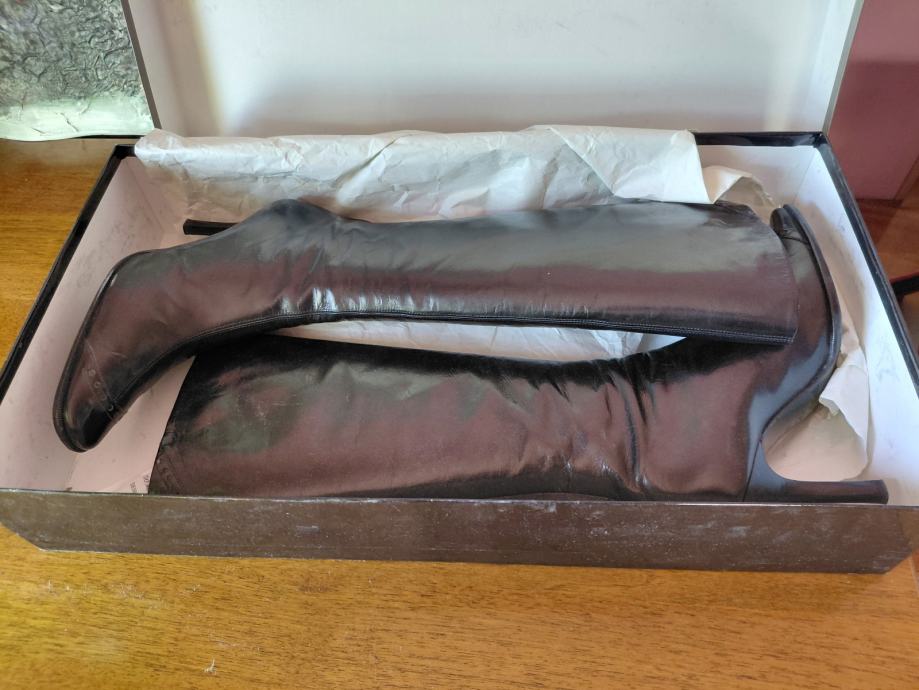 Prodajem Pollini čizmice do koljena, cif otraga. Čizmicee su od prave kože, kao i kožni đon na kojem je nalijepljena na dijelu stopala gumica za zaštitu đona. Čizmice su nošene 2 puta, što se i vidi na njima. Zbog ozljede koljena ne mogu više nositi visoku petu.Upiti isključivo preko Njuškalo poruka i Pay Protekta.