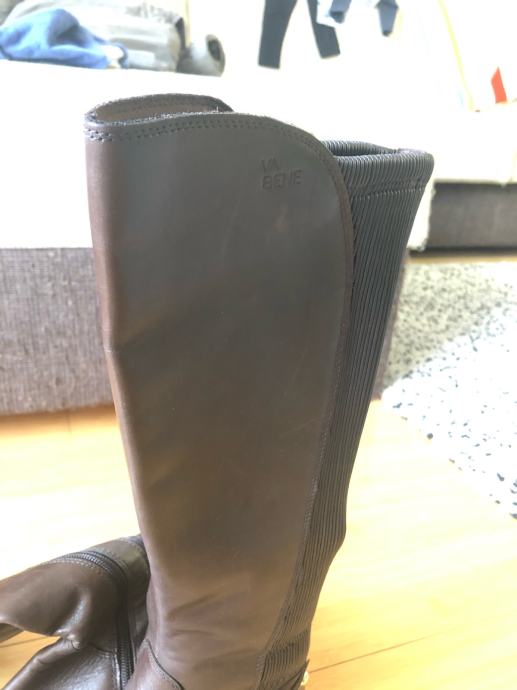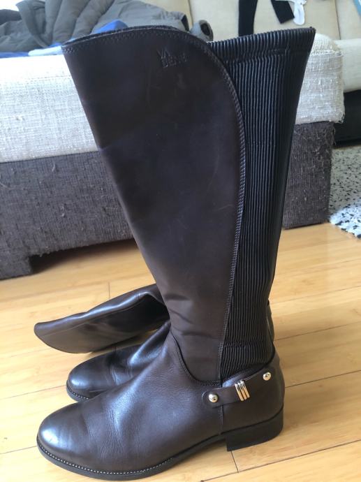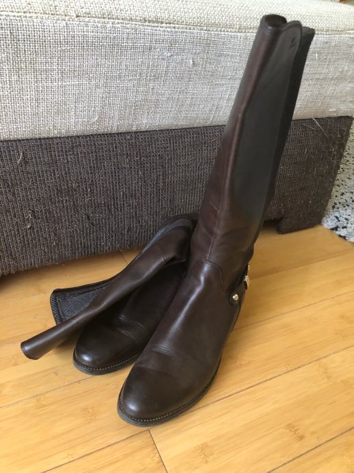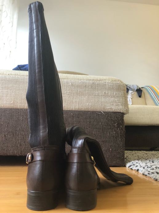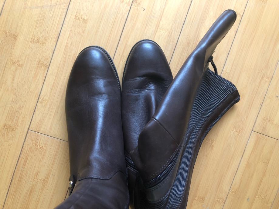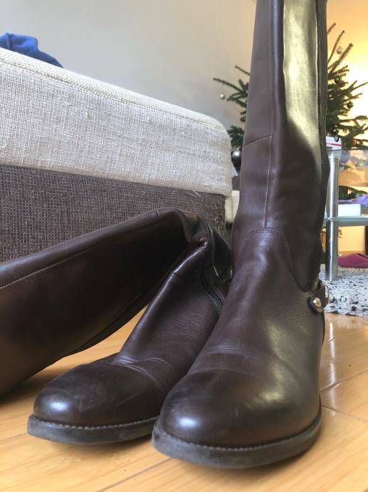 Kožne smeđe čizme, nisu nošene jer su bile prevelike. Broj 42, duljina 29 cm od prsta do pete, kupljene za ca 100 eur.