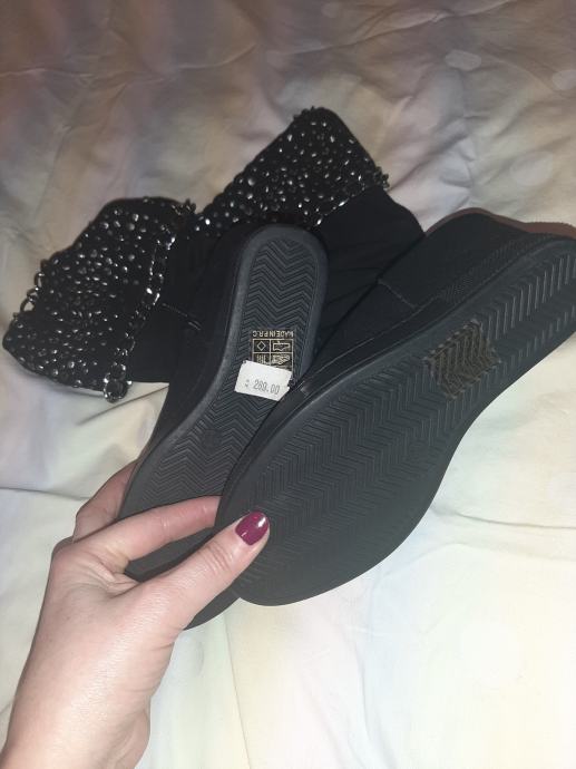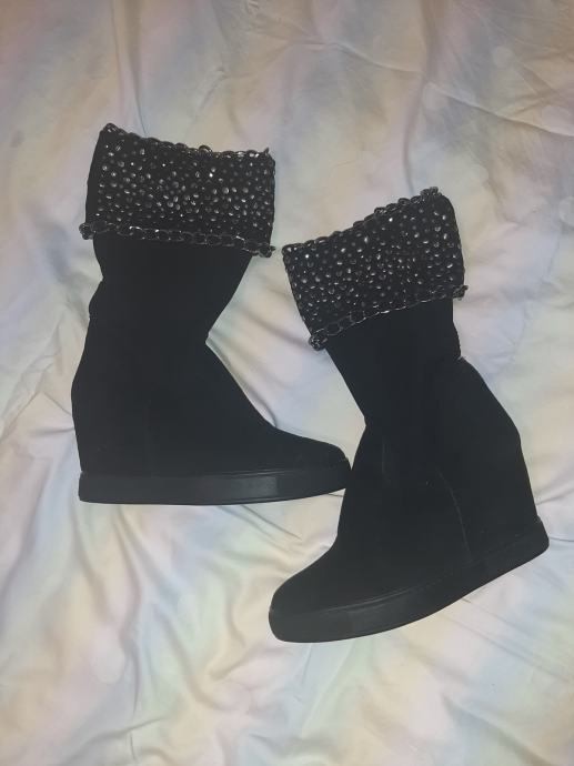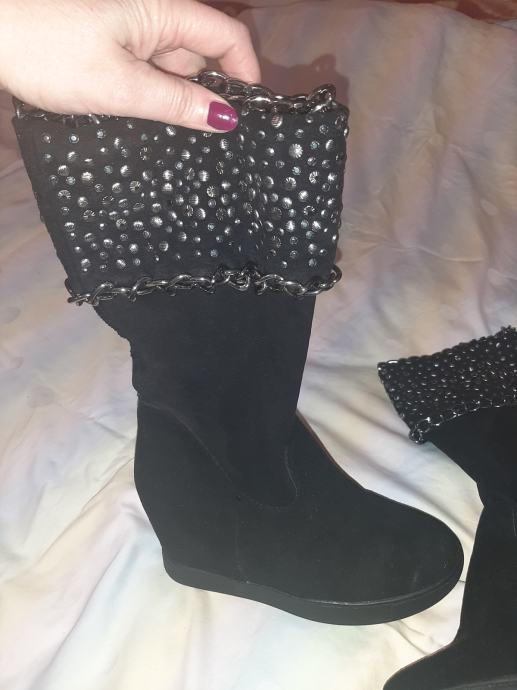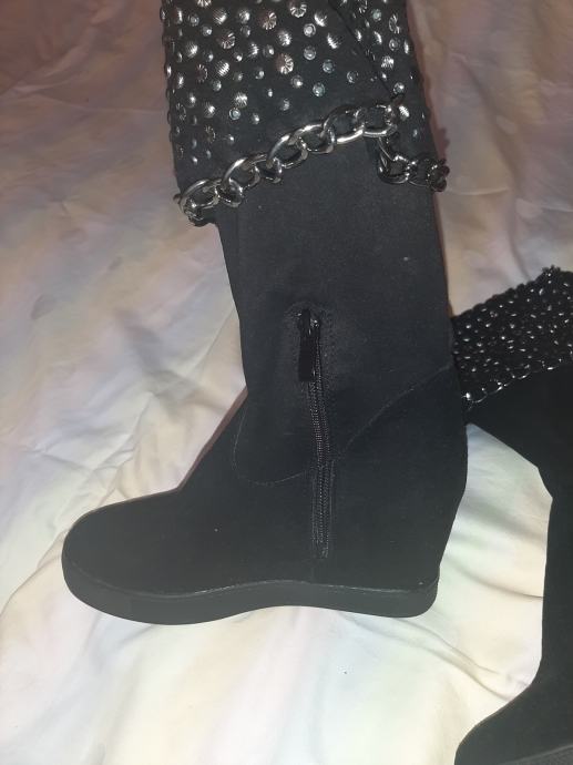 Potpuno nove, nikad nošene crne čizme sa skrivenom petom. Detalj zakovice na gornjem dijelu sare. Vel. 36