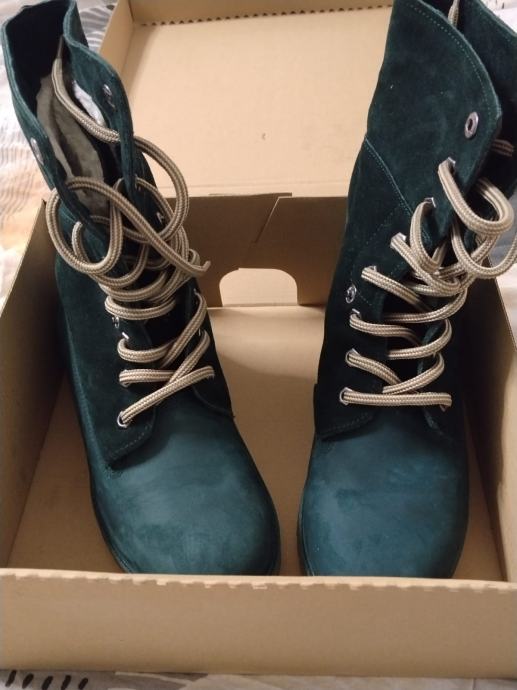 Prodajem elegantne zelene čizme od brušene kože, veličine 38, nove bez etikete. Čizme su udobne, s praktičnim vezicama i robusnim potplatom idealnim za zimske dane. Savršeno se uklapaju uz svakodnevne zimske kombinacije zbog njihove bogate zelene boje i kvalitetne izrade.