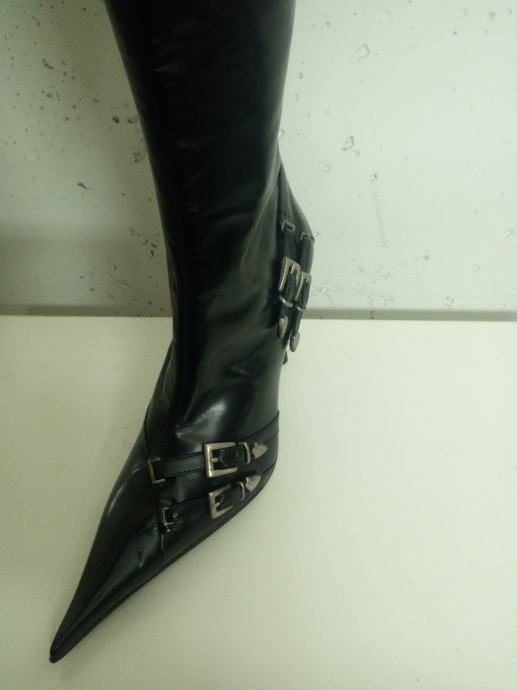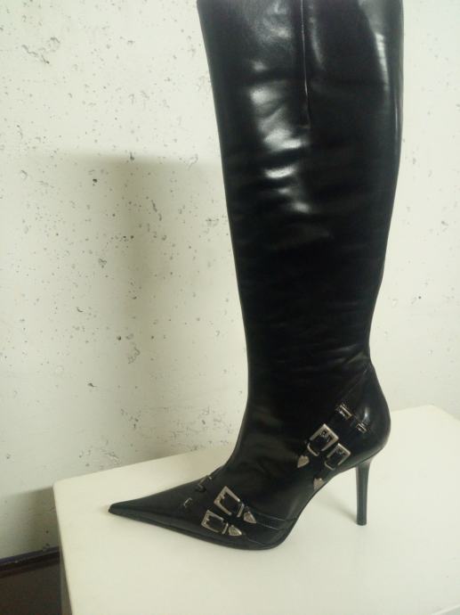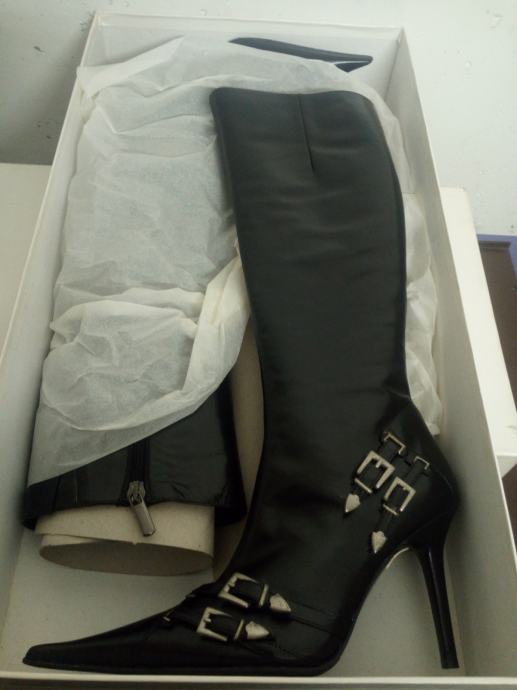 Ženske čizme od prirodne kože crne sa prošivenim đonom