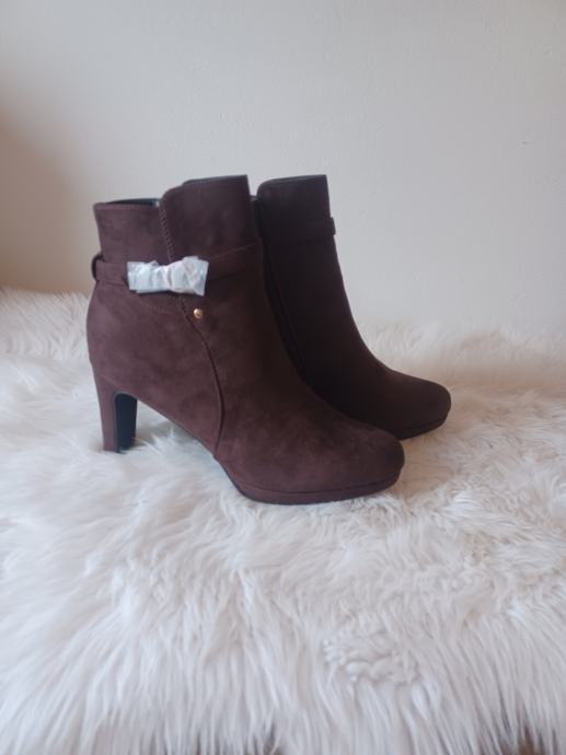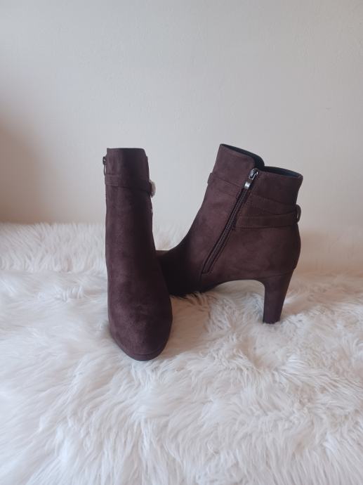 Gležnjače ženske smeđe, gazište 29,0 - 29,5 cm, višina potpetice 9 cm.
