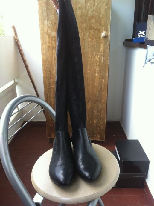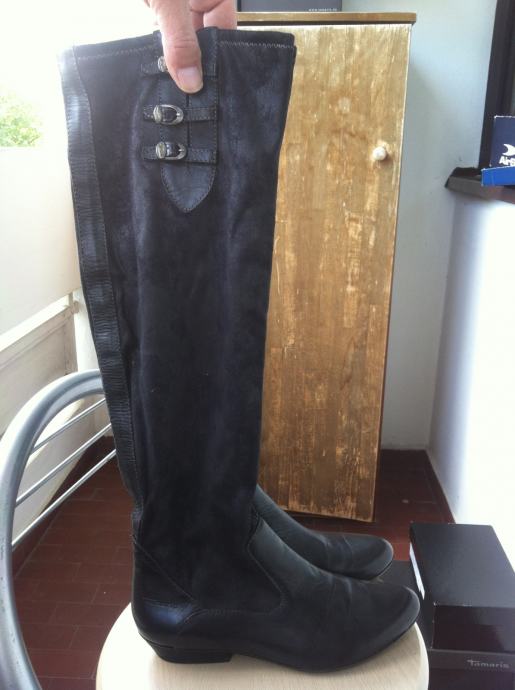 Prodajem kožne crne duboke čizme, kombinacija s brušenom kožom, br. 38 ali manji model, malo nošene i dobro očuvane.